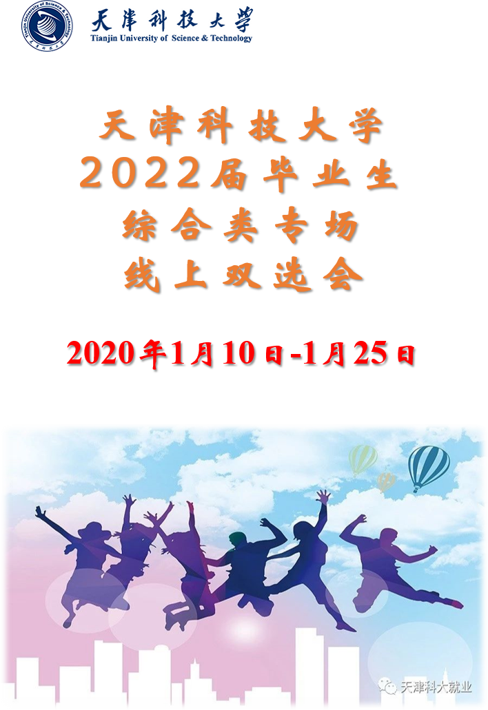 您好!衷心感谢贵单位对天津科技大学2022届毕业生就业工作的大力支持!当前正值2022届毕业生求职择业的关键时期,为搭建企业与毕业生双向选才平台,帮助毕业生充分高质量就业,兹定于2022110日至125日举办天津科技大学2022届毕业生综合类专场线上双选会,诚挚邀请贵单位参加,有关事宜如下: