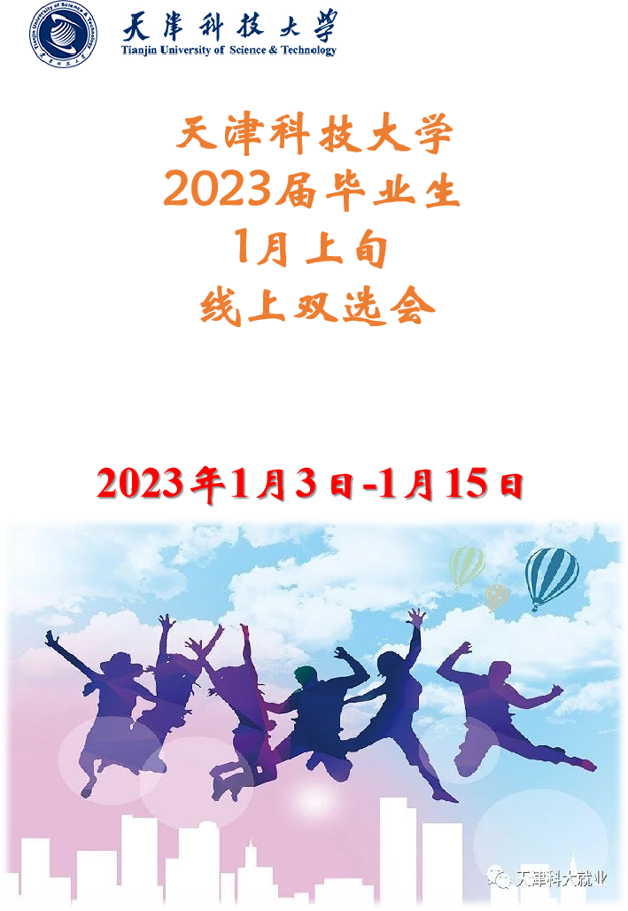 为深入贯彻党中央、国务院关于高校毕业生就业工作的决策部署,满足用人单位招才引智需求,为我校2023届毕业生就业拓宽渠道,我校拟举办天津科技大学2023届毕业生1月上旬线上双选会。