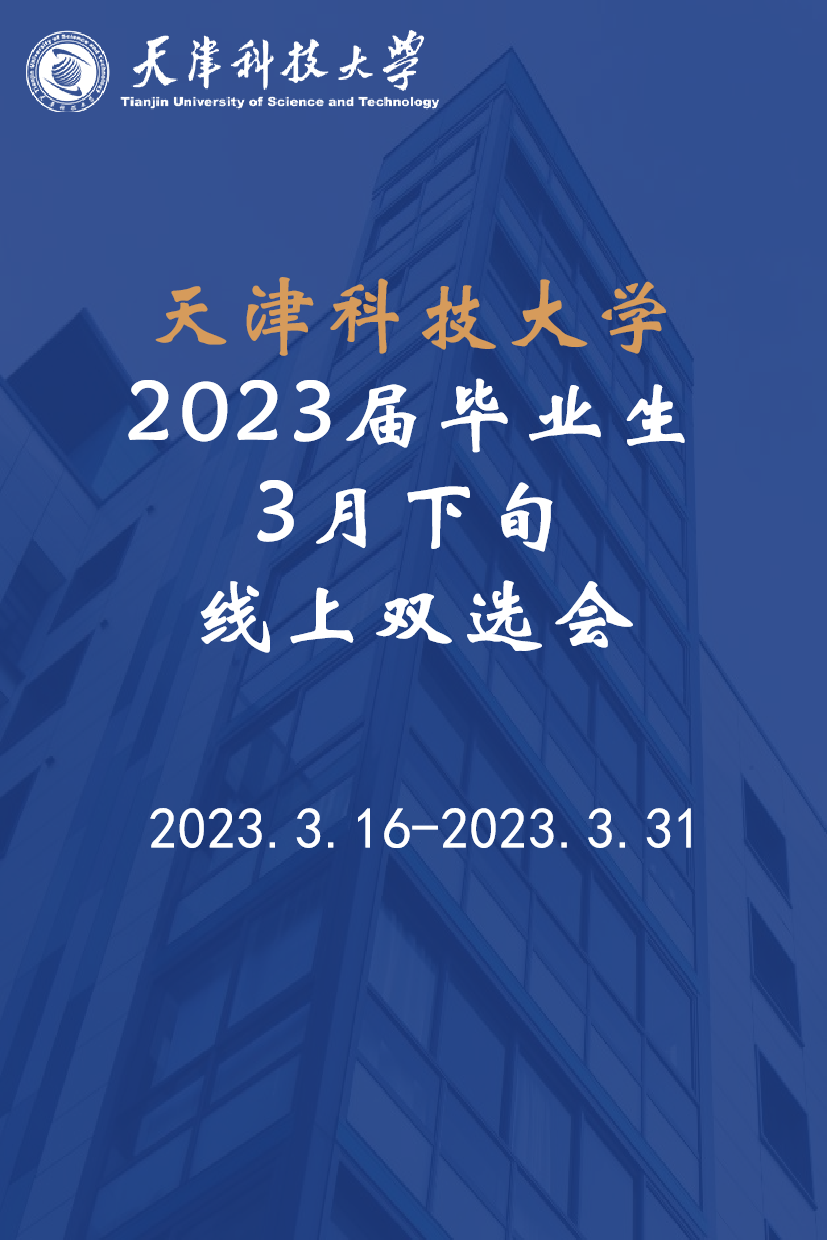 为深入贯彻党中央、国务院关于高校毕业生就业工作的决策部署,满足用人单位招才引智需求,为我校2023届毕业生就业拓宽渠道,我校拟举办天津科技大学2023届毕业生3月下旬线上双选会。