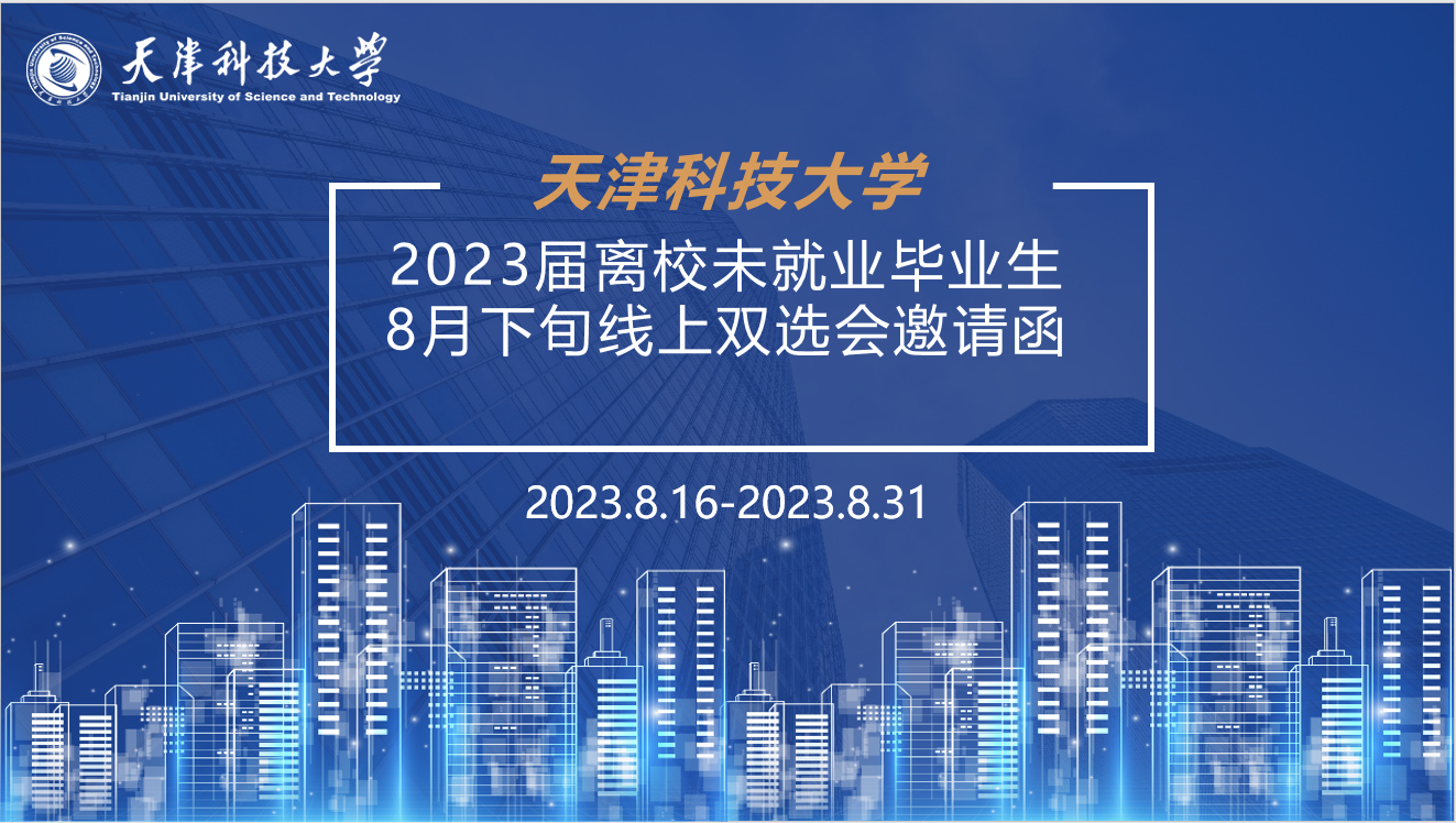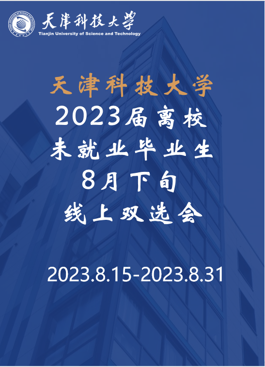 为深入贯彻党中央、国务院关于高校毕业生就业工作的决策部署,满足用人单位招才引智需求,为我校2023届离校未就业毕业生加大拓宽就业渠道,我校拟举办天津科技大学2023届离校未就业毕业生8月下旬线上双选会。
