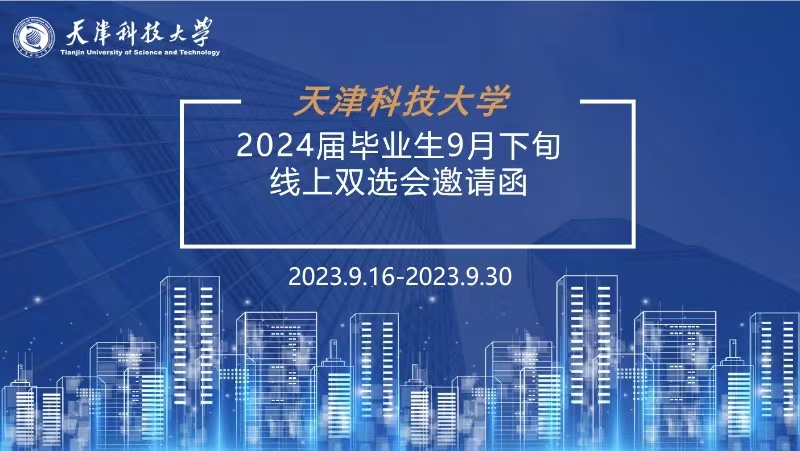为深入贯彻党中央、国务院关于高校毕业生就业工作的决策部署,满足用人单位招才引智需求,为我校2024届毕业生拓宽就业渠道,我校拟举办天津科技大学2024届毕业生9月下旬线上双选会。