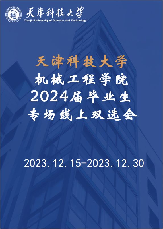 您好!衷心感谢贵单位对天津科技大学机械工程学院2024届毕业生就业工作的关注和支持!为积极搭建用人单位与我院毕业生双向选择的就业平台,拓宽学院毕业生高质量就业渠道,为广大企业提供优秀人才,拟定于2023年12月15日至12月30日举办机械工程学院2024届毕业生线上双选会,诚挚邀请各用人单位参加,具体如下: