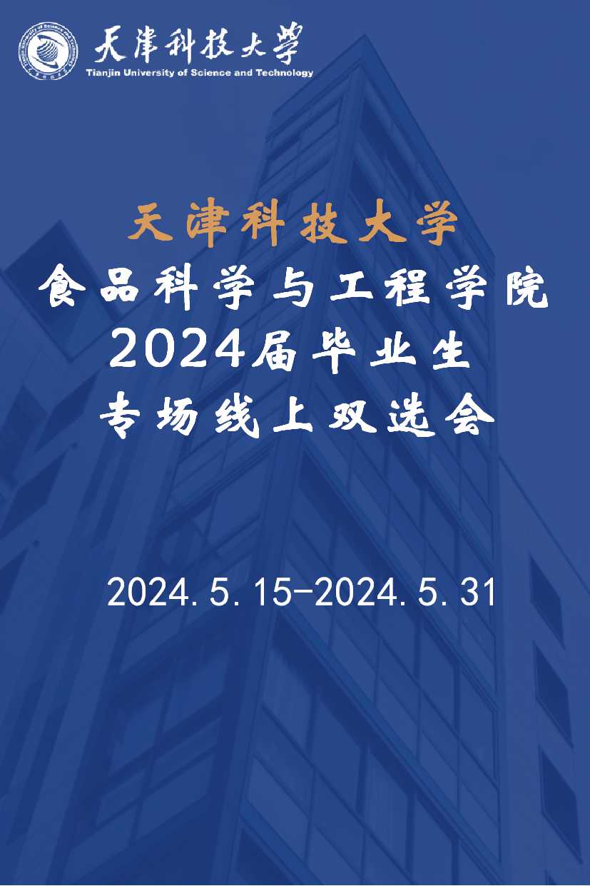 您好!衷心感谢贵单位对天津科技大学食品科学与工程学院2024届毕业生就业工作的关注和支持!当前正值2024届毕业生求职择业的关键时期,为搭建企业与毕业生双向选才平台,促进校企合作,实现优势互补,食品学院将于2024年5月15日-5月31日举办2024届毕业生线上双选会。我们诚挚邀请各用人单位单位参与,帮助毕业生实现充分就业、高质量就业,具体事宜如下: