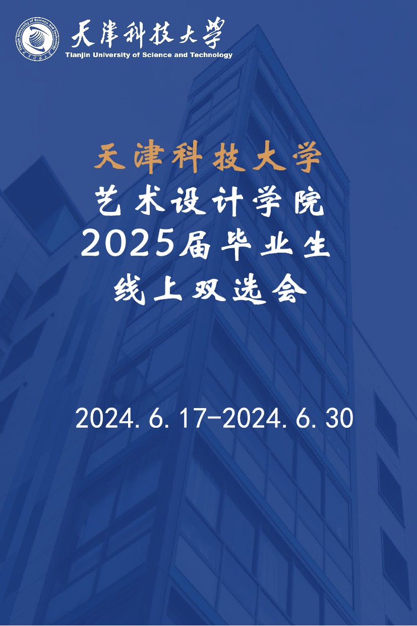 您好!感谢贵单位长期以来对天津科技大学艺术设计学院就业工作的关注与支持!为促进学院2025届毕业生高质量充分就业,为用人单位与毕业生搭建双向选择的沟通交流平台,艺术设计学院将于2025年6月17日—2025年6月30日举办2025届毕业生线上双选会,诚挚邀请各用人单位莅临我校,广纳贤才!